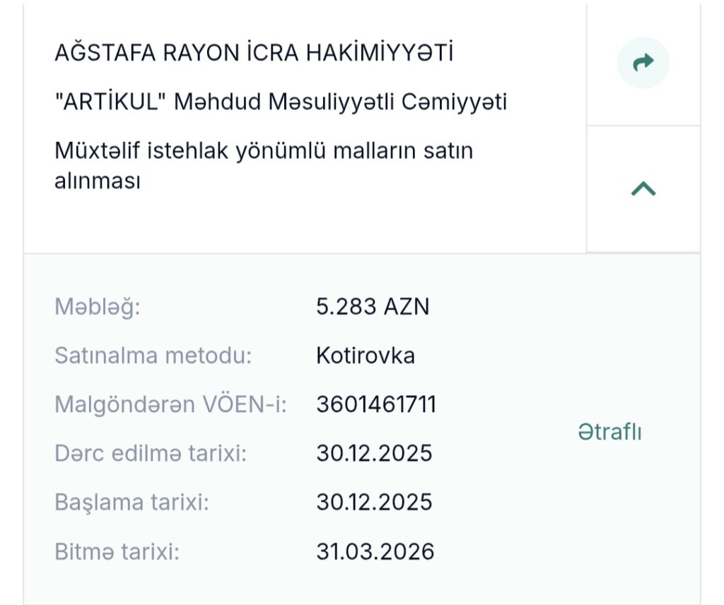 Ağstafa rayon İcra Hakimiyyətinin 2026 cı ilin əvvəllərində ayırdığı Tenderlərin siyahısını təqdim edirik…