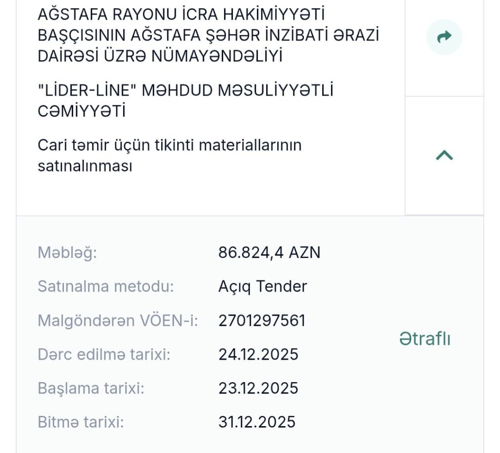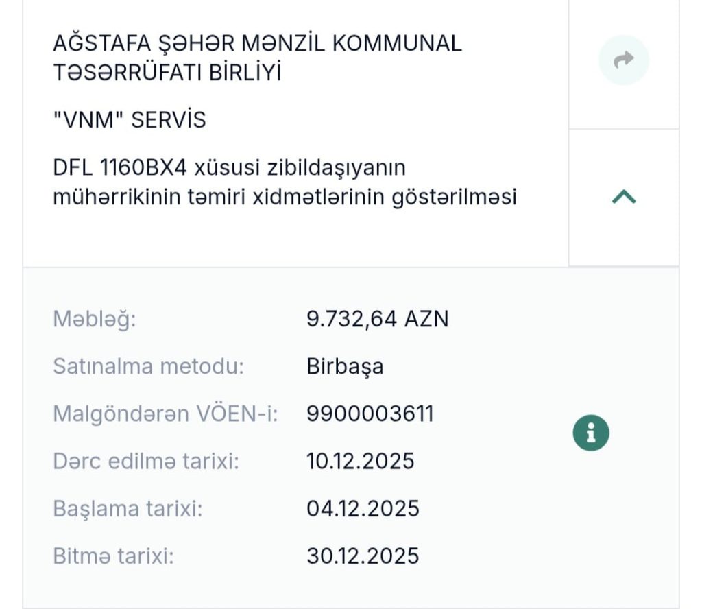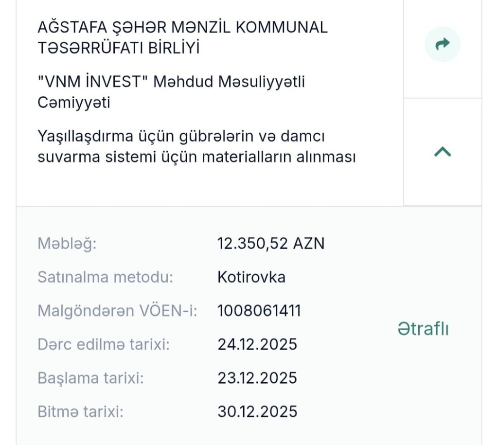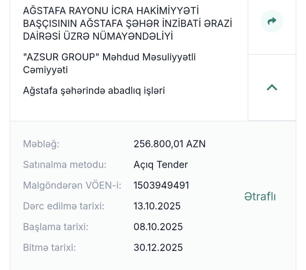 Sözü gedən rayonda 700 min manat Tender son iki ayda bağlanıbdır. Diqqət çəkən Tenderlər VNM İNVEST” Məhdud Məsuliyyətli Cəmiyyəti tərifindın bir neçəsinin bağlanması həyata keçirilibdir. Təsadüf ola bilməz ki, eyni MMC nən bir neçə dəfə Tender qalibi olsun. Burada razılaşma qarşılığı diqqət çəkir.