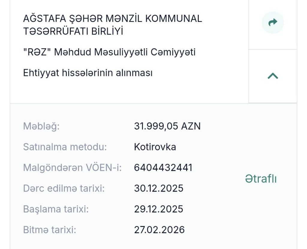 AĞSTAFA RAYON İCRA HAKİMİYYƏTİNİN 700 minlik Tender hara xərclənib?