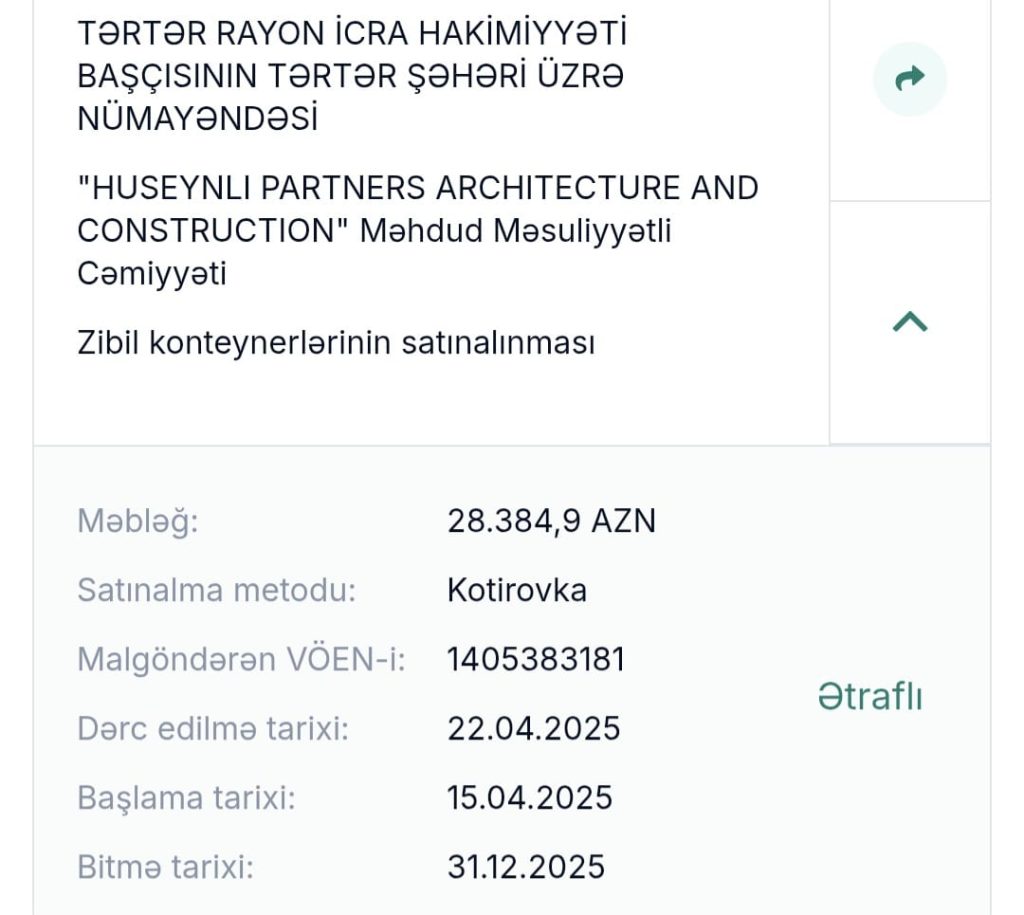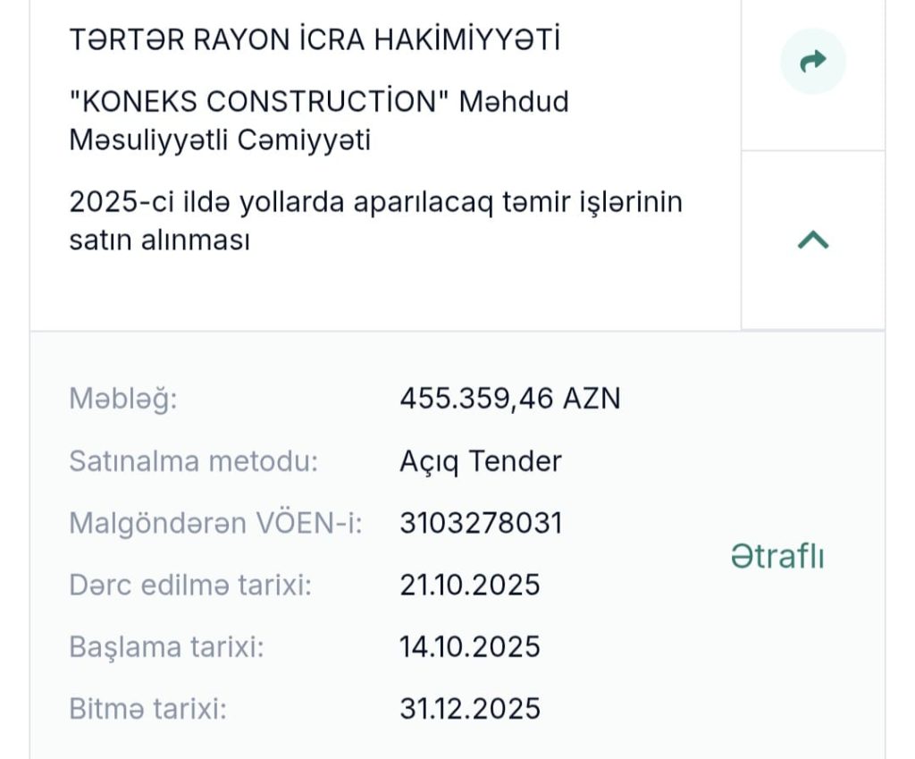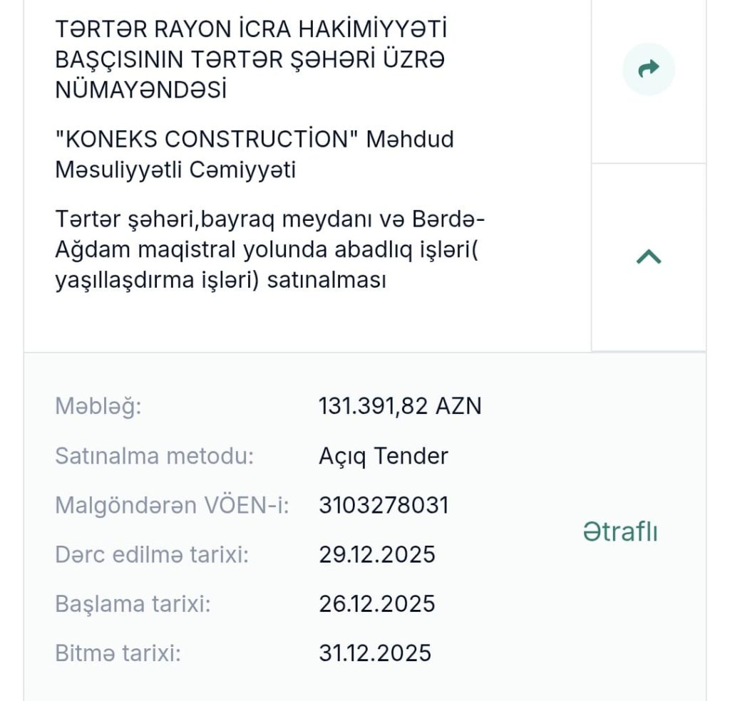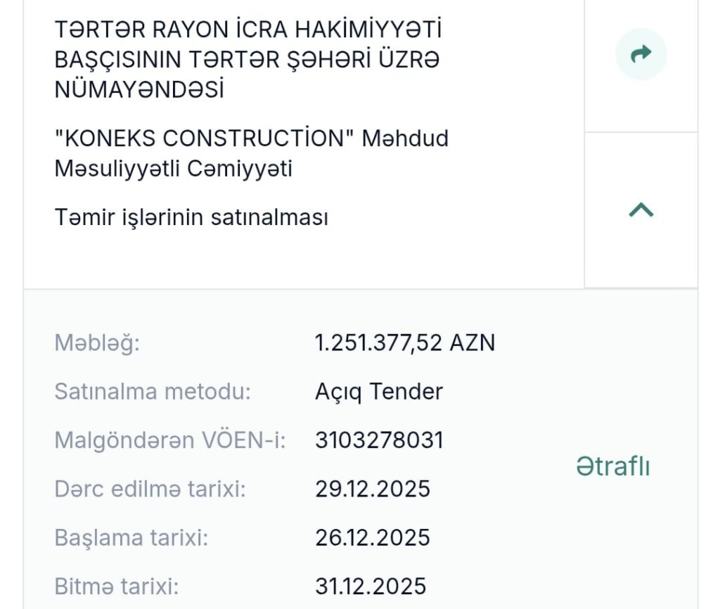 Tərtər rayon İcra Hakimiyyətinin 2 milyonluq tenderi…