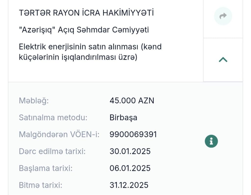 Elektrik enerjisinin satın alıinması (kənd küçələrinin işıqlandırılması üzrə)